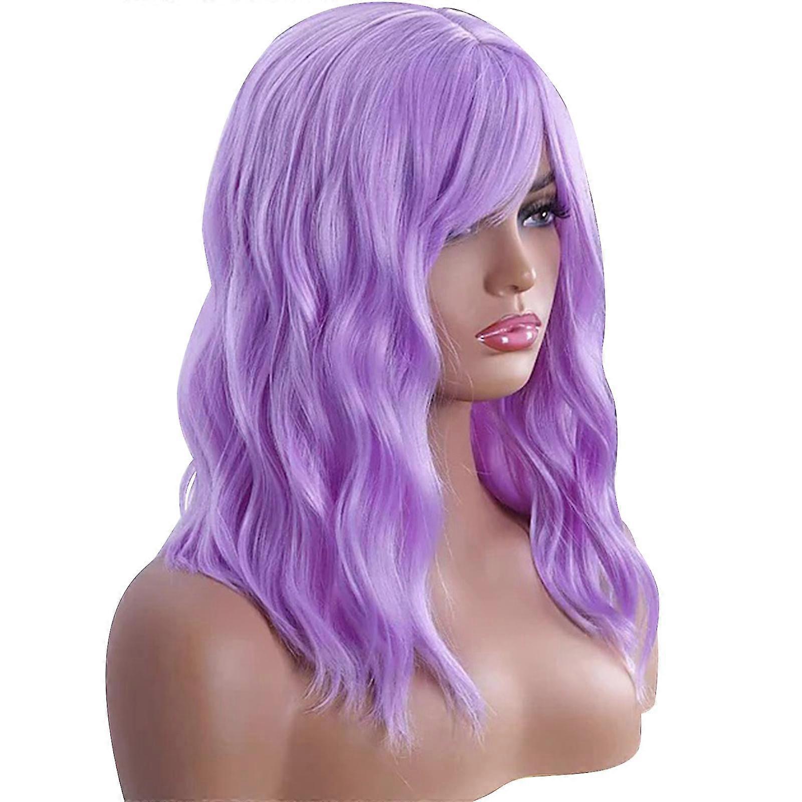 Short Bob Hair Wigs Straight With Flat Bangs Synthetic Colorful Cosplay Daily Party Neon Wig 14" For Women