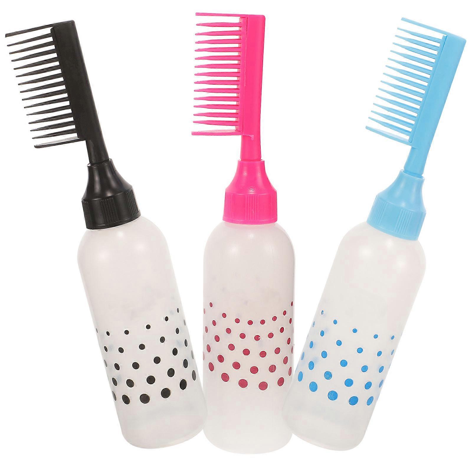 Hair Dye Bottle Applicator Hair Color Oiling Bottles Comb Shape Barbershop 150ml Rose Red 3Pcs