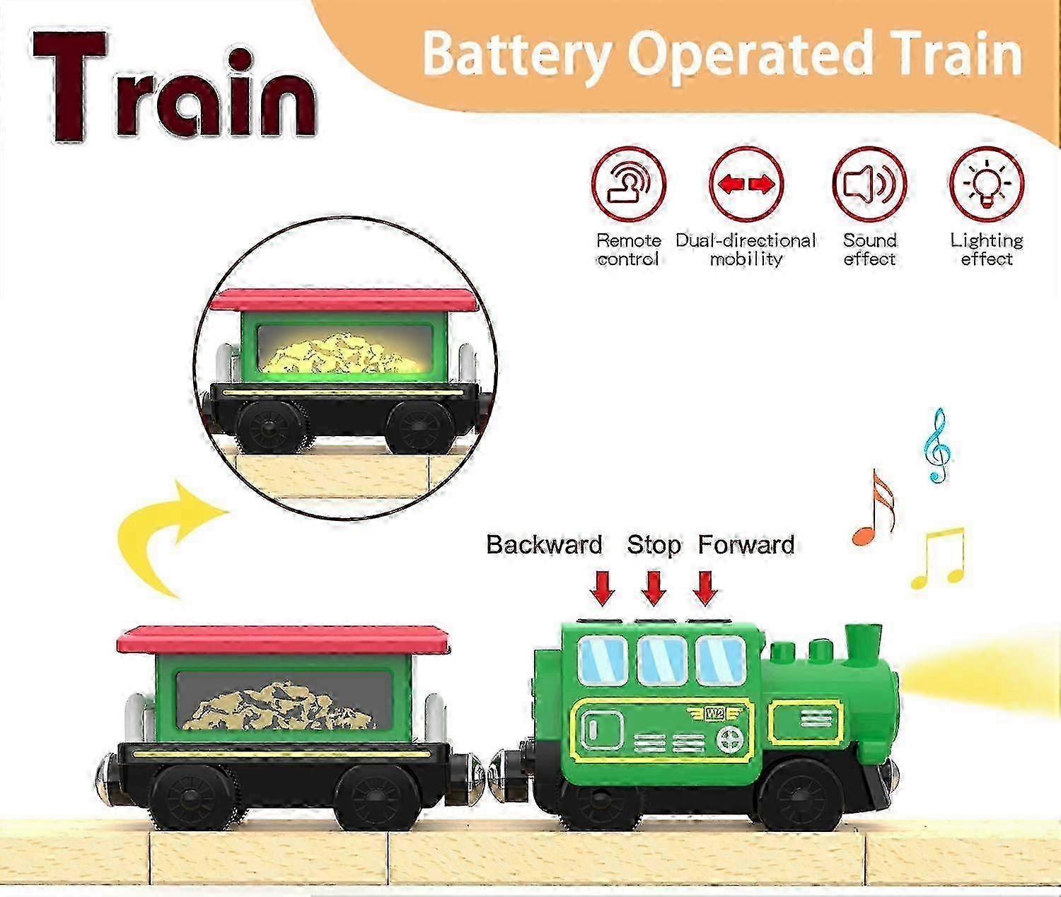 Motorized Train for Wooden Track, Remote Control Train with Magnetic Connection, for Toddlers, Compatible with Thomas, Brio , Green