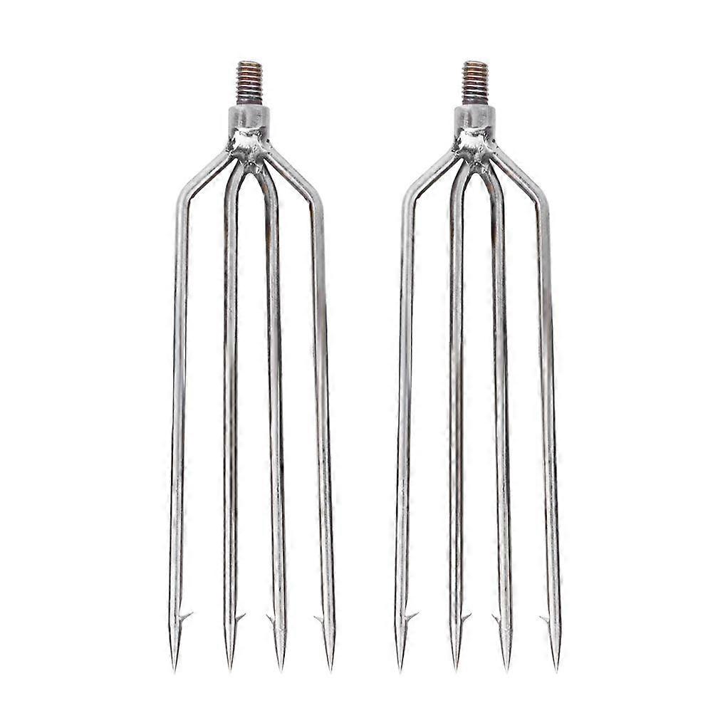 2 pcs Stainless Steel 4 Prongs Harpoon Gig Gaff Hook Barb Fish Spear for Outdoor Fishing Tackle