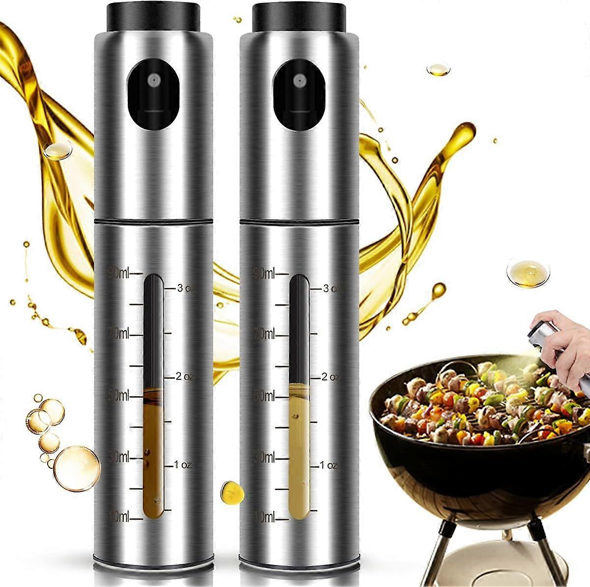 Pieces Oil Spray Bottle, Stainless Steel Cooking Sprayer, Portable Olive Oil Sprayer with 2 Scales Perfect for Kitchen, Salad, Baking(100ml/3.42oz)