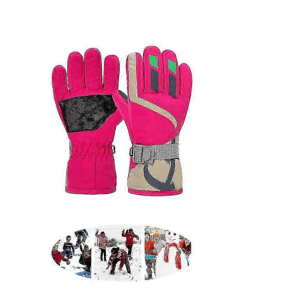 Kids' Winter Ski Gloves - Cartoon Windproof Warm Plush Gloves for Boys & Girls - Red