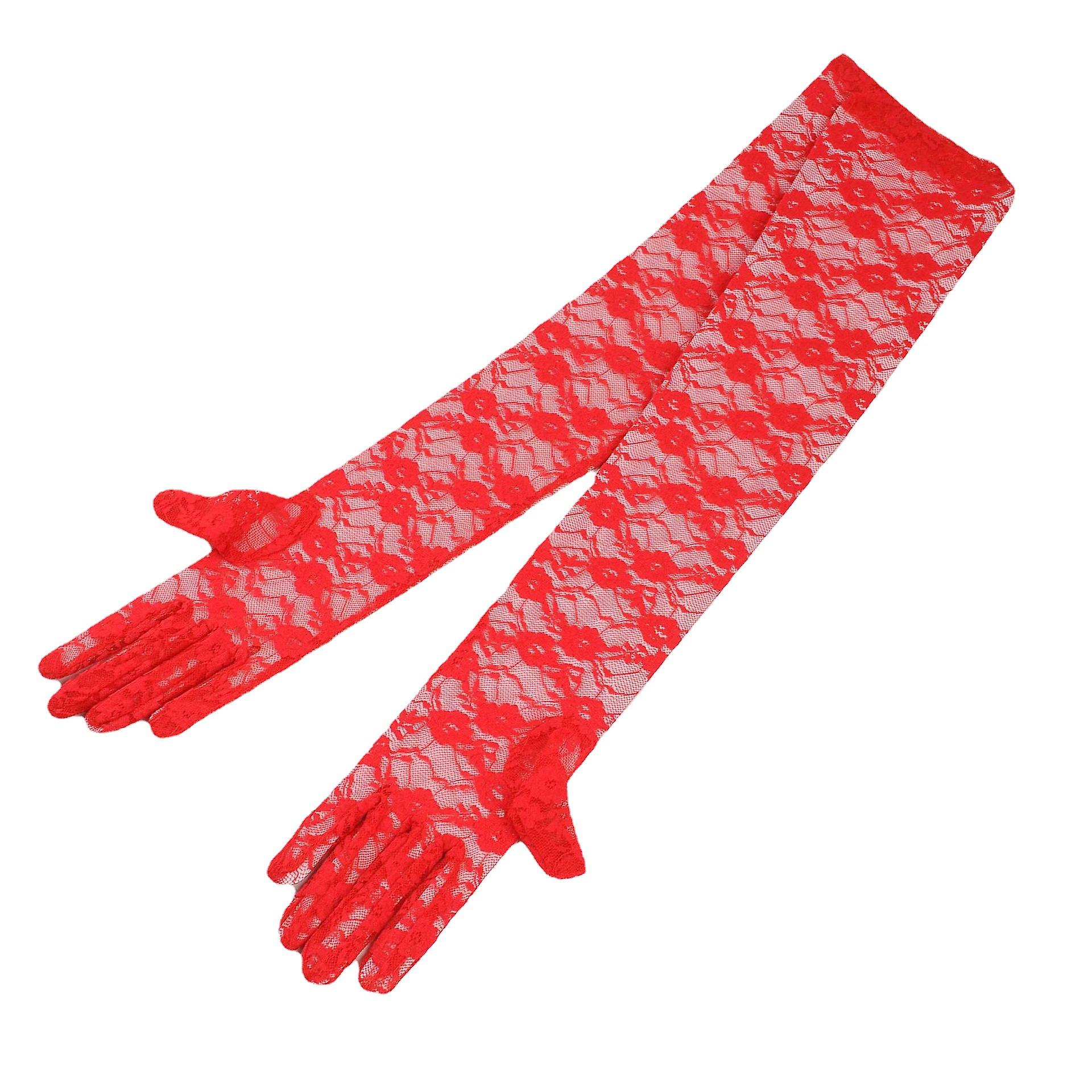 Long Lace Gloves, Bridal Gloves For Wedding Small Flower Pattern Floral Lace Gloves For Women Tea Party Costumes Prom Masquerade(1 Pair, Red)