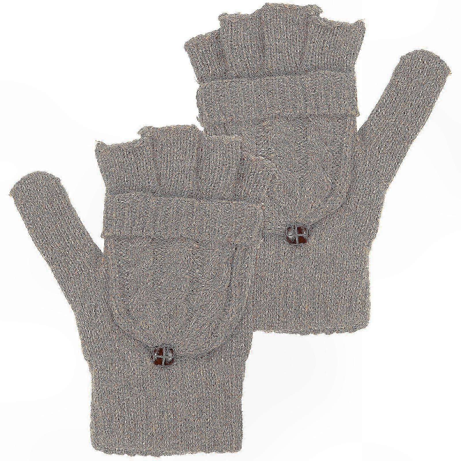 Winter Warm Wool Knitted Gloves for Women, Fingerless with Mitten Cover, Brown