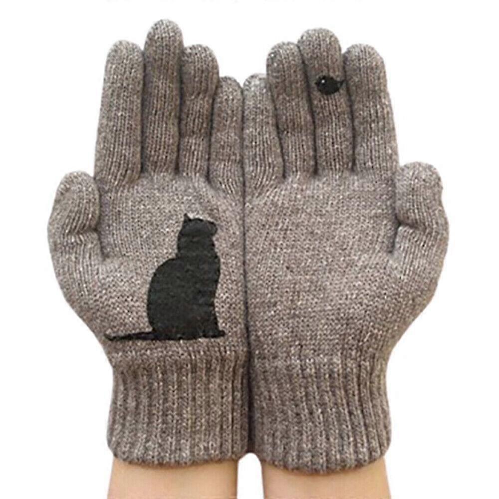 Cat Fan Winter Gloves,Cat Bird Print Gloves Cute Pink Simple Mitten IJF