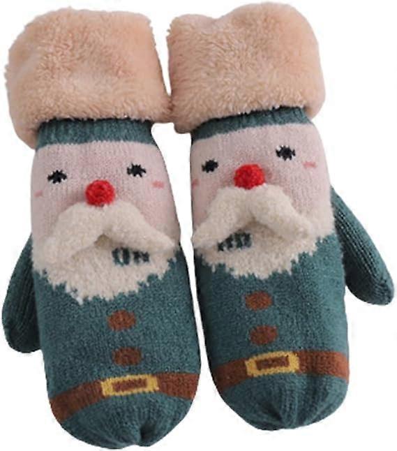 Gloves - Vintage Christmas Santa Claus Pattern Knitted Gloves Women Thicken Gloves Winter Warm Full Finger Xmas Presents Girls