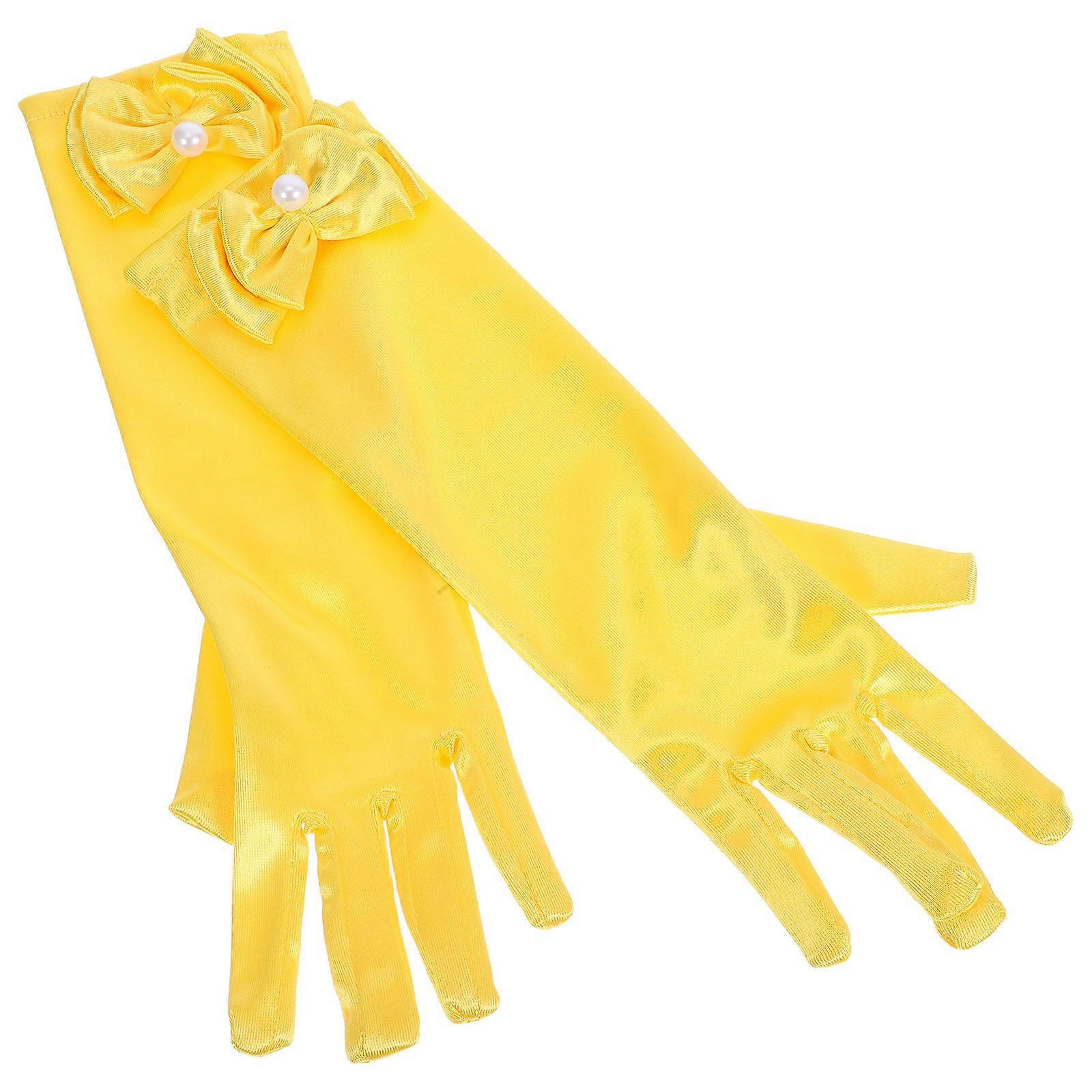 Flower Girl Gloves Long Satin Bowknot Dress Gloves for Wedding Evening Party Yellow One Size Fits Most Girls Full Finger Style 1Pair
