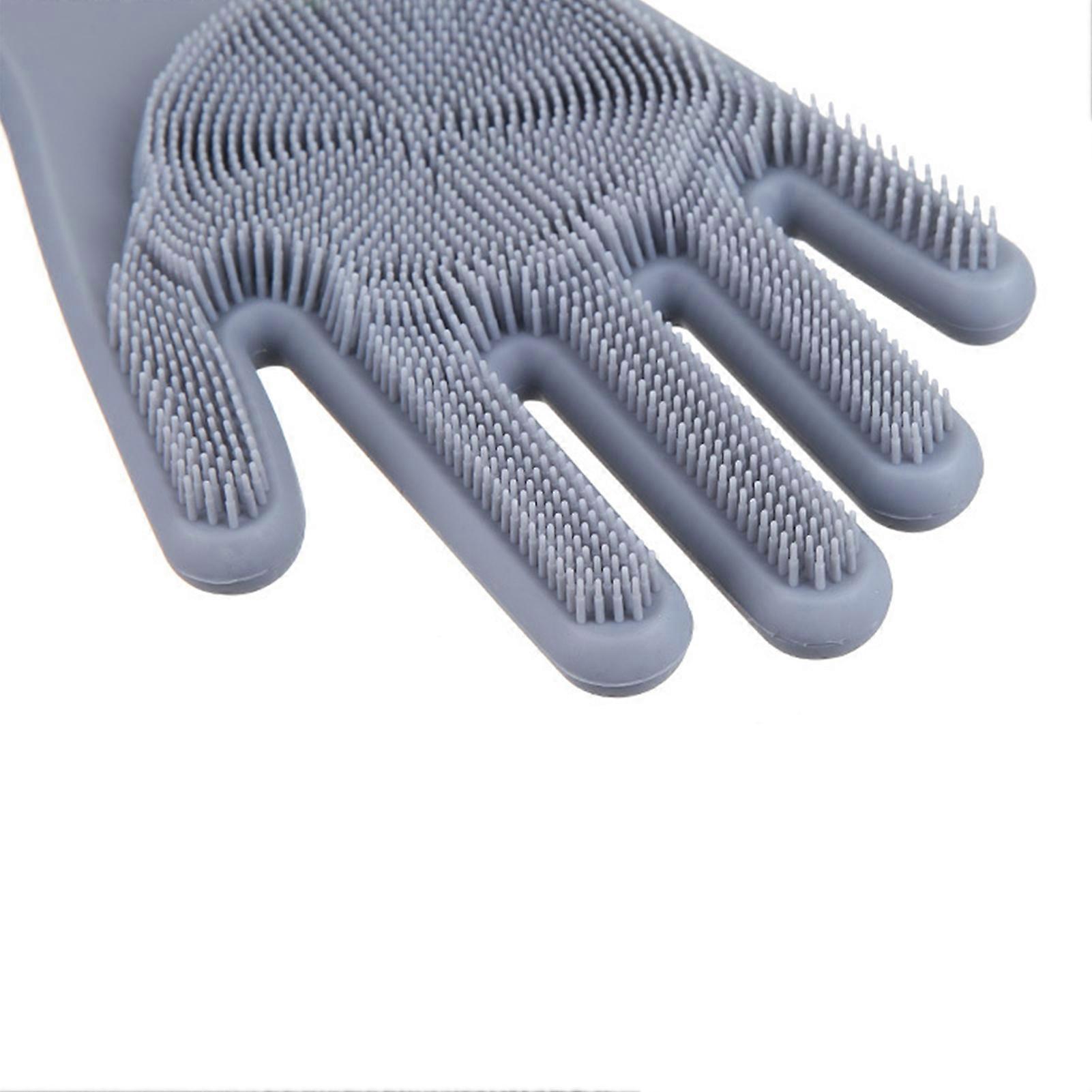 Silicone Gloves with bristles Waterproof Splashproof Oil Proof Soft Elastic Kitchen Dishwashing Silicone Cleaning GlovesGrey