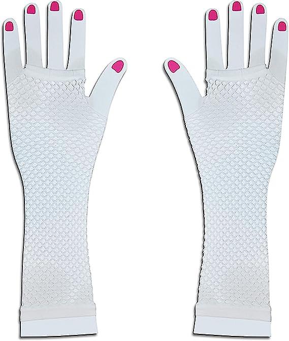 Long Fishnet Gloves Fingerless Party Fancy Dress Tutu Rave Hen Night(2pair, White, Black)