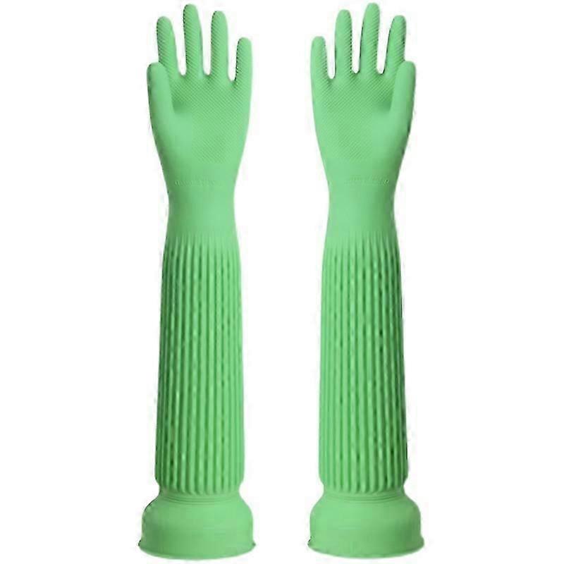 Long Waterproof Rubber Latex Gloves Reusable Garden or Kitchen Gloves 58cm Green