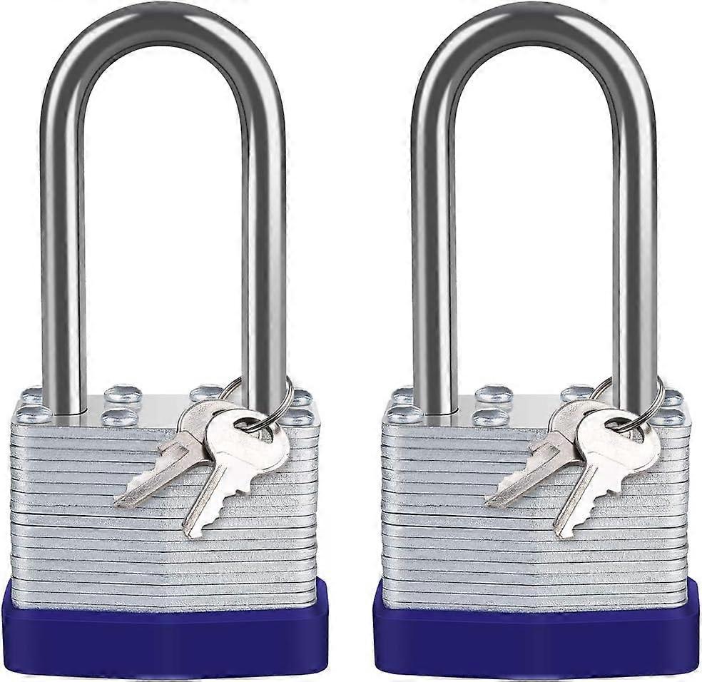 Outdoor Laminated Steel Padlock 40mm, Pack of 2 Waterproof Very High Security Padlock, Long Steel Shackle, for Gym Lockers, Garden Sheds, Garage, Fenc