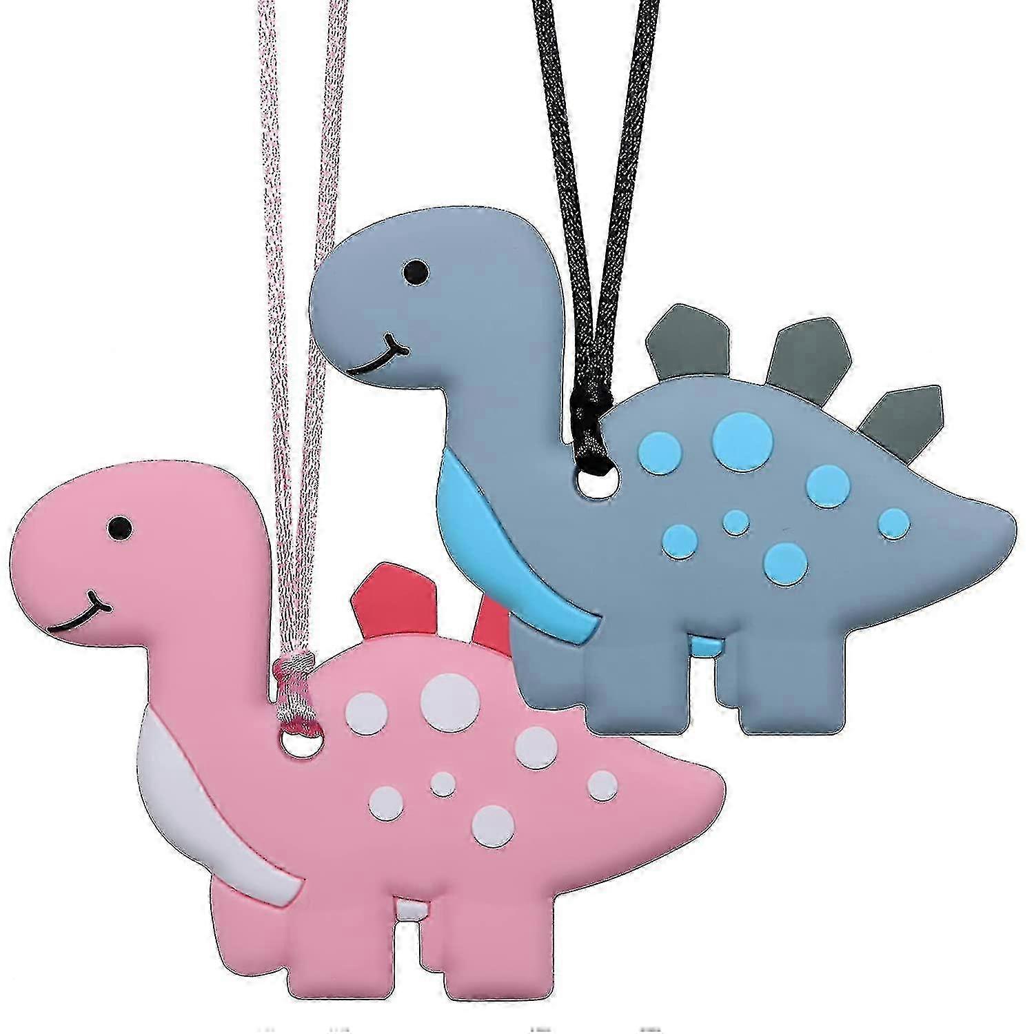 Silicone Dinosaur Chew Necklaces for Kids & Adults, Sensory Oral Motor Toys, 2 Pack Chewable Pendants for Focus and Calm