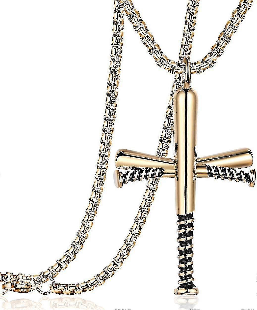 Baseball Bat Cross Pendant Necklace For Boy Men Women With 24" Stainless Steel Chain Black Gold Silver