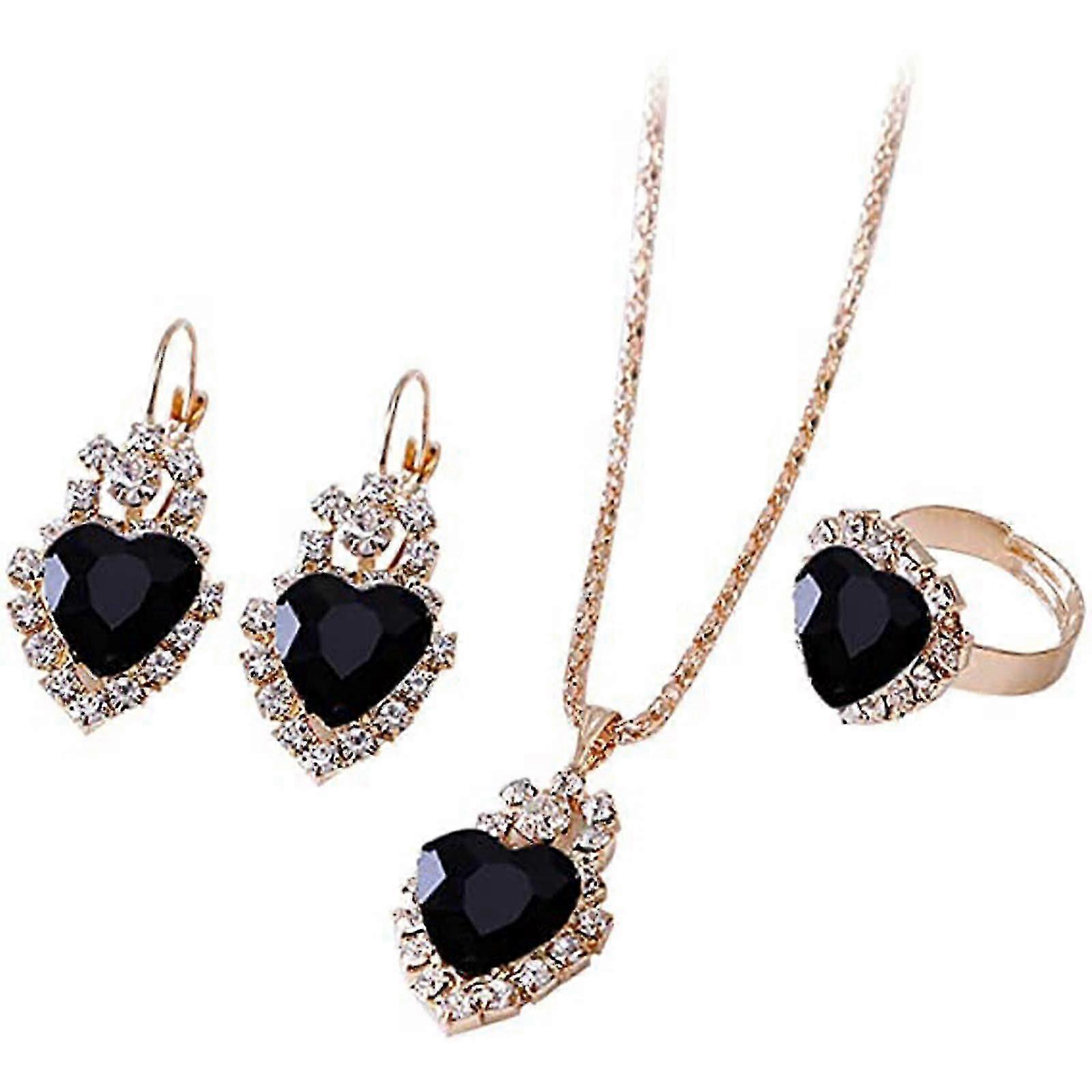 Love Heart Necklace Pendant Earrings Ring Set Jewelry For Women Girls Bracelet Necklace Earrings Set Valentine's Day Gift!zz21