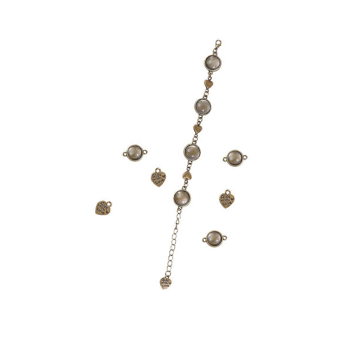 This item is a pack of DIY bracelet accessories, which is made of alloy. It is a great accessory set for DIY your jewelry. Retro design will add some embellishments and make your jewelry special and outstanding among the crowd. You can also make a special gift with it for your friends and family. Features - ColorGolden - Material: Alloy. - Size: About 2.2x1.5x0.1cm. - Made from material, durable to use. - This delicate set is simple but stylish with the unique design. - Perfect for DIY lovers and make them enjoy in it. - Great DIY your friends, lovers or yourself. - A complete jewelry crafting kit for ! - Note: comes with glass sheets, without photos. Package list: 5 x DIY bracelet kit
