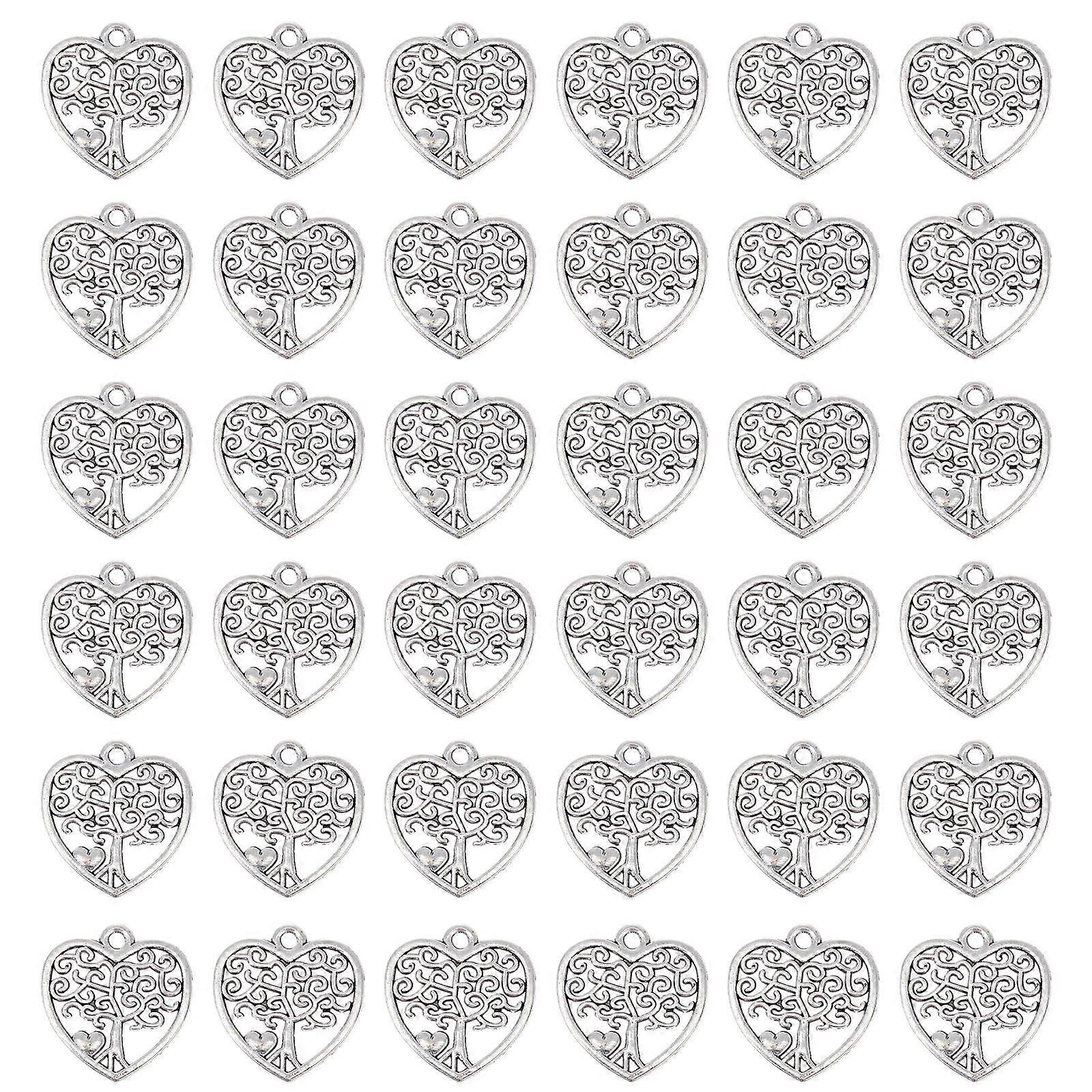Silver Alloy Hollow-Out Tree Pendant for Decoration 50Pcs DIY Pack