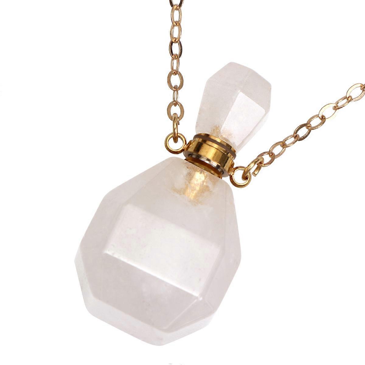 White Crystal Perfume Bottle Pendant Necklace for Holding Liquid with Extra Plug Mini Size 1.5 Inches
