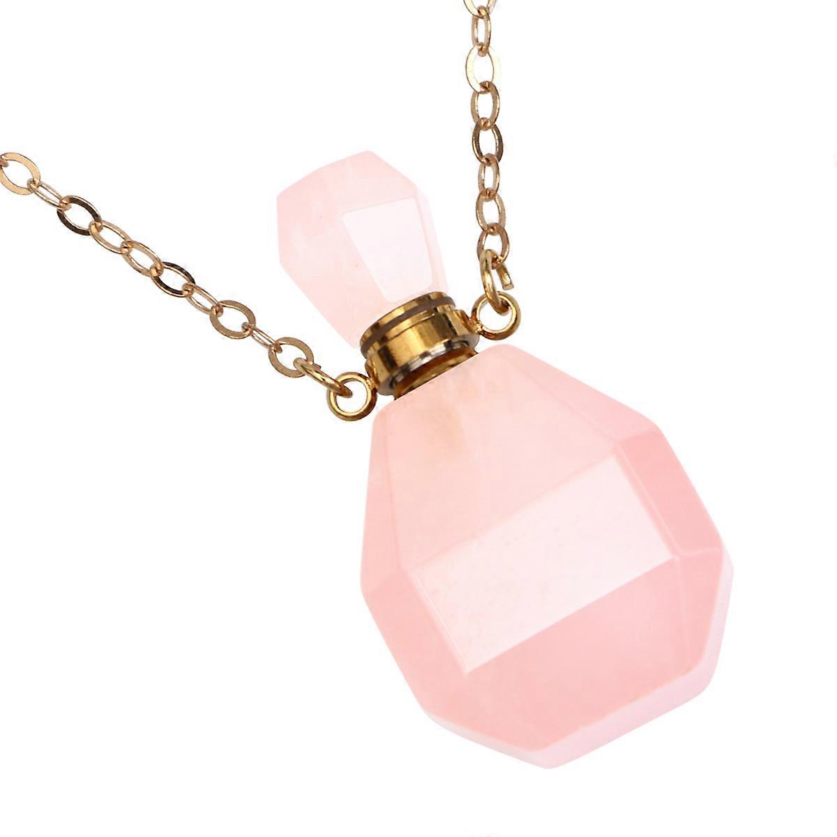 Pink Crystal Perfume Bottle Pendant Necklace for Holding Liquid with Metal Chain 3cm x 2cm