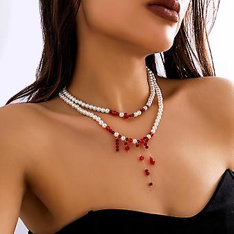 قلادة لؤلؤة الدم ، قلادة مصاص دماء مصاص دماء هالوين القوطية ، قلادة قلادة قلادة اللؤلؤ للنساء ، هدية زي حزب هالوين