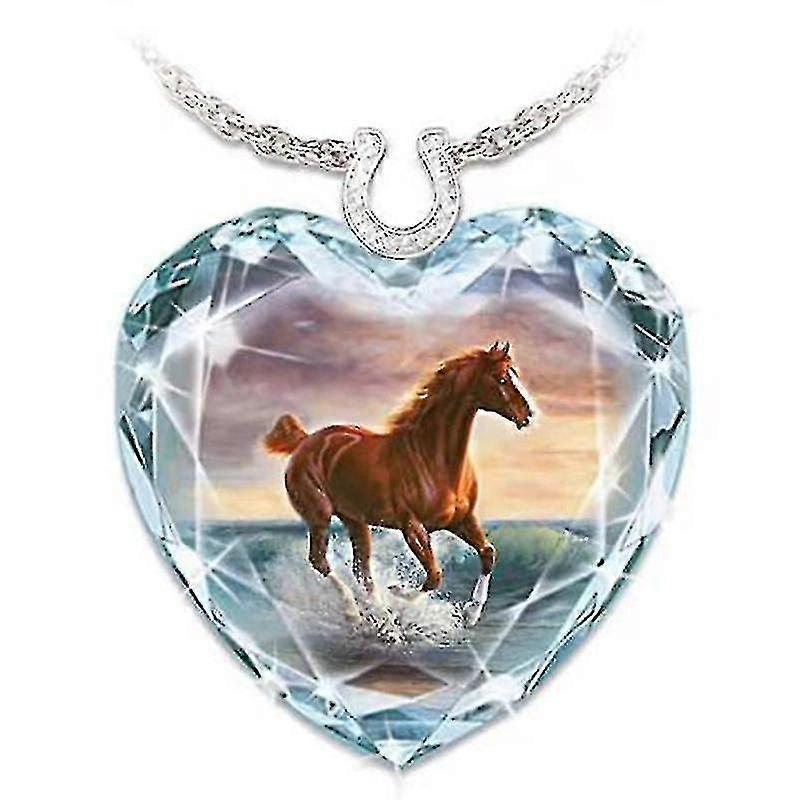 Exquisite Heart Crystal Pendant Necklace Elegant Lady Fashion Horse Necklaces For Kids Children Statement Jewelry Party Gifts