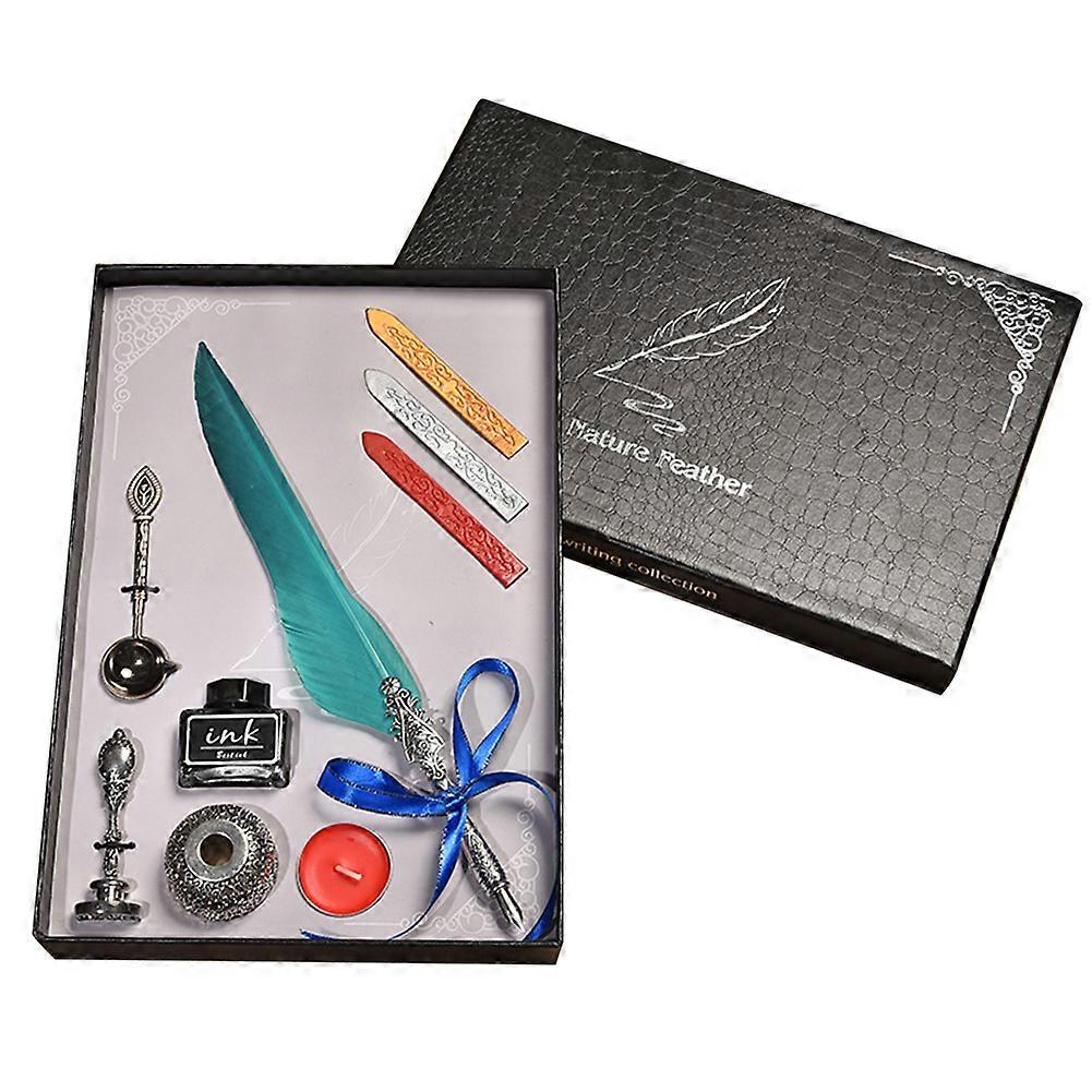 Vintage Classical Fountain Pen Sign Pen Calligraphy Feather Quill Dip Pen Set (Dark Green)
