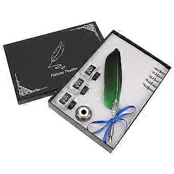 Vintage Classical Fountain Pen Sign Pen Calligraphy Feather Quill Dip Pen Set (Green)