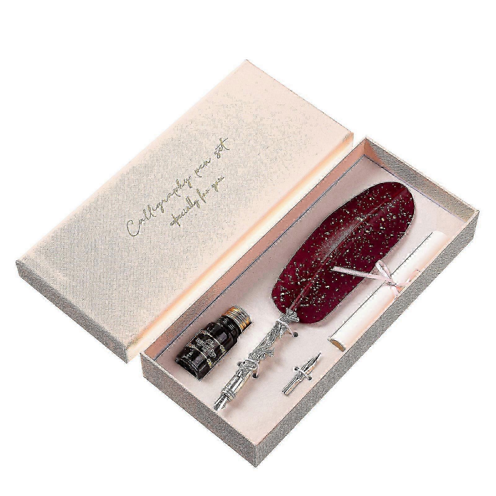Feather Dip Pen with Pen Nib and Ink, Retro Quill Pen Feather Dip Pen Calligraphy Gift for Beginner Gothic Calligraphy