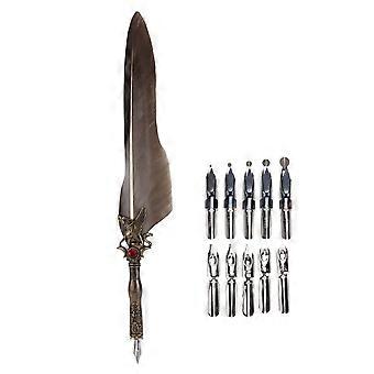 Feather Pen Craft Retro Carved Stainless Steel Dip Pencil for Signature Gift Table Decoration(GrayBlack )