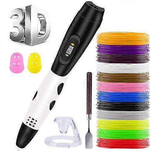 3D Printing Pen with LCD Screen for Kids and Adults - 12 Colored PLA Filaments - White and Black