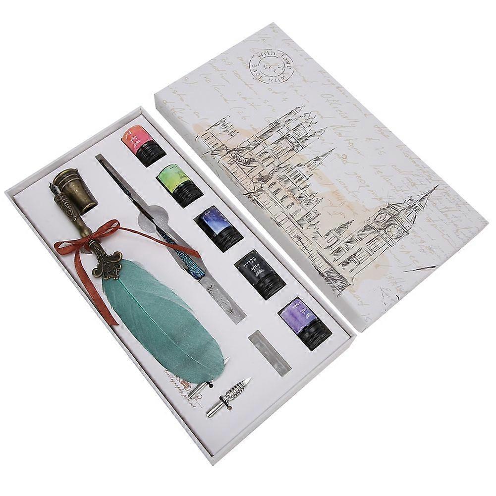 Vintage Feather Dip Pen with Ink 4 Nibs Set School Office Writing Supplies Gifts for Friends Family