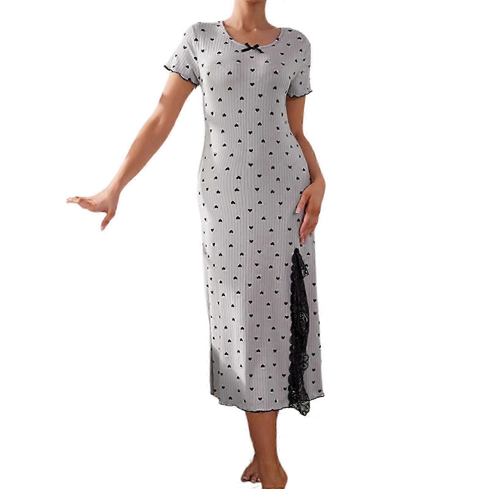 Features: Summer short sleeve sleep dress it is a good choose whether you are going out or at home Fabric summer sleepwear nightdress make from quality fabirc,breathable and moisture wicking. supremely comfortable sleepshirt for quality sleep and life Occasion,ice silk nightdress is a perfect choose for wedding night, party, bridesmaid dress.the silk nightgown is soft and comfortable, imagine how eye catching it is when appearing on lively, festive occasion Wonderful gift,sweet warm gift for friend family and yourself. Feature,short sleeve,round neck,side split lace,long nightdress. Specifications: Fabric:Polyester Color:01,02,03,04 Size:S Hip:86-90cm(33.86-35.43inch) Waist:62-66cm(24.41-25.98inch) Bust:82-86cm(32.28-33.86inch) Size:M Hip:90-94cm(35.43-37.01inch) Waist:66-70cm(25.98-27.56inch) Bust:86-90cm(33.86-35.43inch) Size:L Hip:94-98cm(37.01-38.58inch) Waist:71-74cm(27.95-29.13inch) Bust:90-94cm(35.43-37.01inch) Size:XL Hip:98-102cm(38.58-40.16inch) Waist:74-78cm(29.13-30.71inch) Bust:94-98cm(37.01-38.58inch) Package Includes: 1Piece Women's Side Split Lace Nightgown note: Please allow 1-2cm errors due to manual measurement. Due to the differences betweeen different monitors,the picture may not reflect the actual colour of the item.