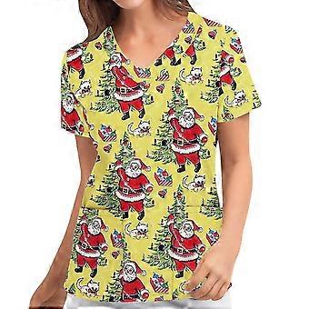 Christmas V-neck Shirt, Short Sleeves, Women's Nursing Uniform