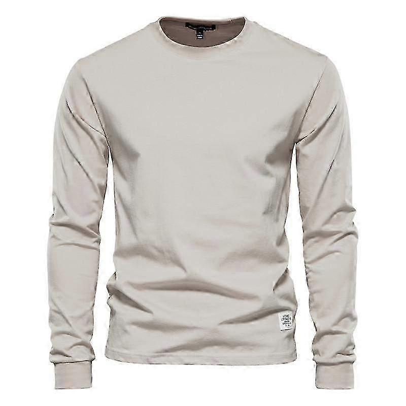 High-Quality Solid Color Long Sleeve Cotton T-Shirt for Men - Casual O-Neck Basic Tee for Spring & Autumn Wear