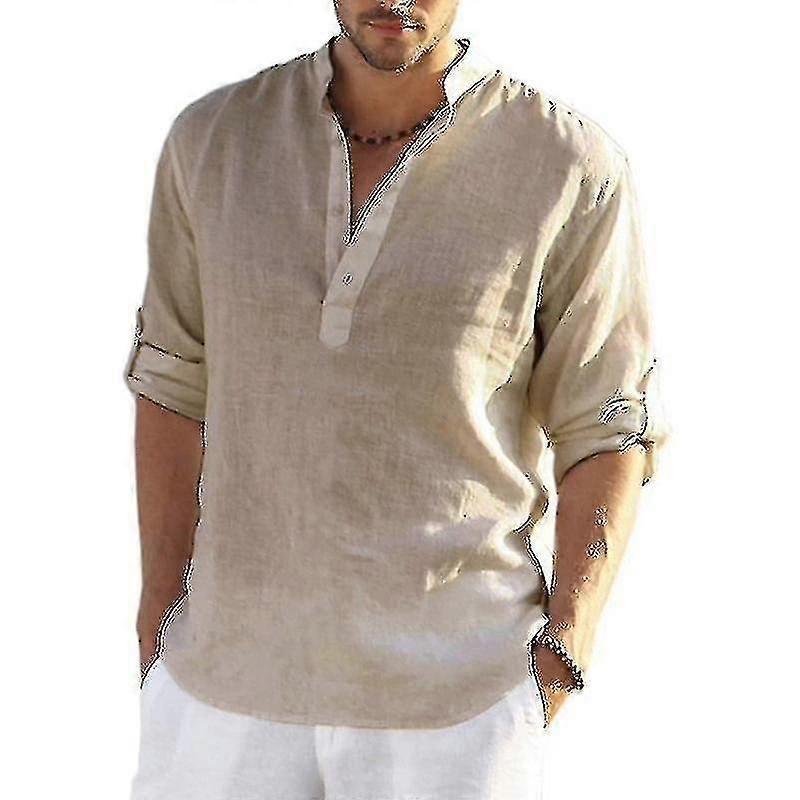 Men's Long Sleeved Linen Shirt, Cotton And Linen Casual Shirt, S-5xl Top S202412304600