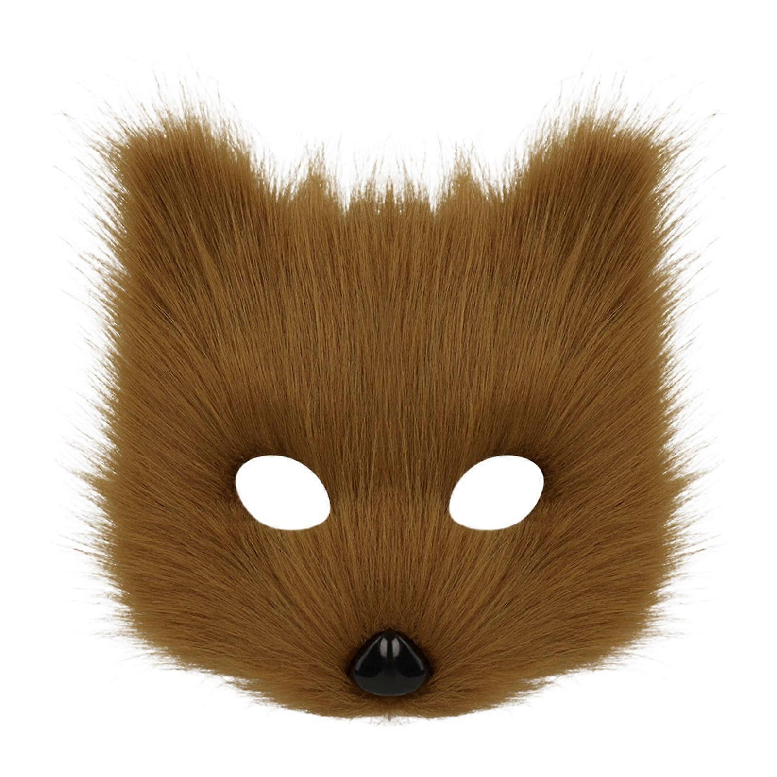 Animal Fox Wolf Mask Halloween Party Skirt Props Plush Cat Half Face Carnival