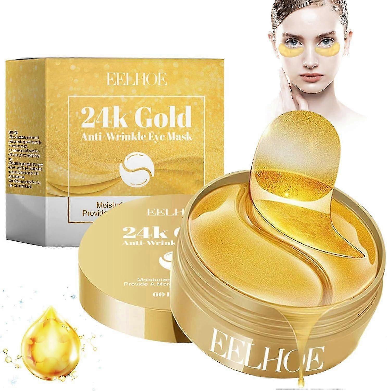 60Pcs 24K Eye Mask, Collagen Eye Mask, 24k Gold Eye Patches, Long-Lasting Moisturizing, Relieves Dark Circles and Puffiness