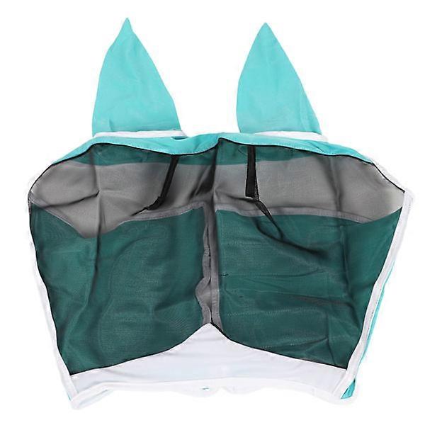 Mesh Horse Fly Mask Elastic UV Protection Detachable Breathable Horse Fly Mask with Ears for Horses Blue Green L