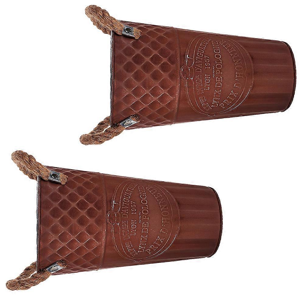 Coffee Color Vintage Metal Flower Pot for Decor 2Pcs Iron Bucket