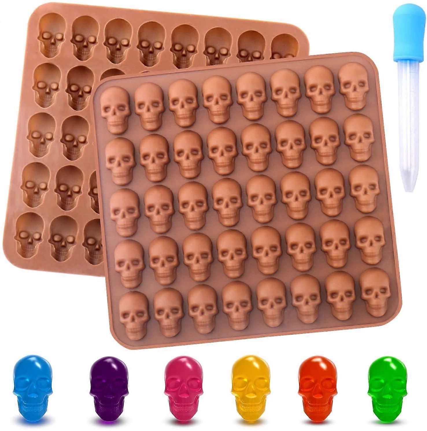 Gummy Skull Candy Molds Silicone, 2 Pack 40 Cavity Non-Stick Skull Silicone Molds with 1 Droppers for Chocolate, Candy, Jelly, Ice Cube, Dog Treats