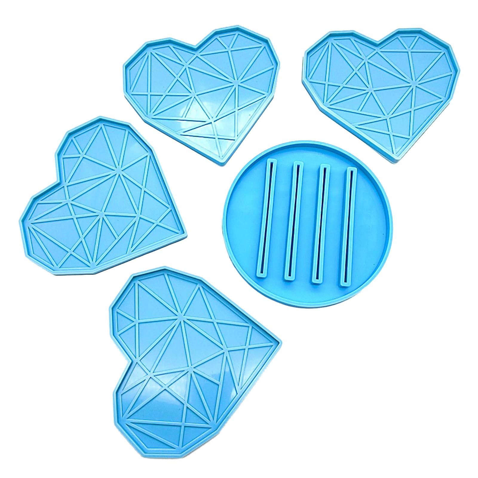 Resin coaster mold set 4 pcs heart shape silicone coaster molds and 1 pcs coaster storage rack mold,keep your coaster crafts organized.making resin coasters is great for beginners and is sure to for dazzle everyone who sees them.let your unique crafts be a memorable gift for family or friends.
