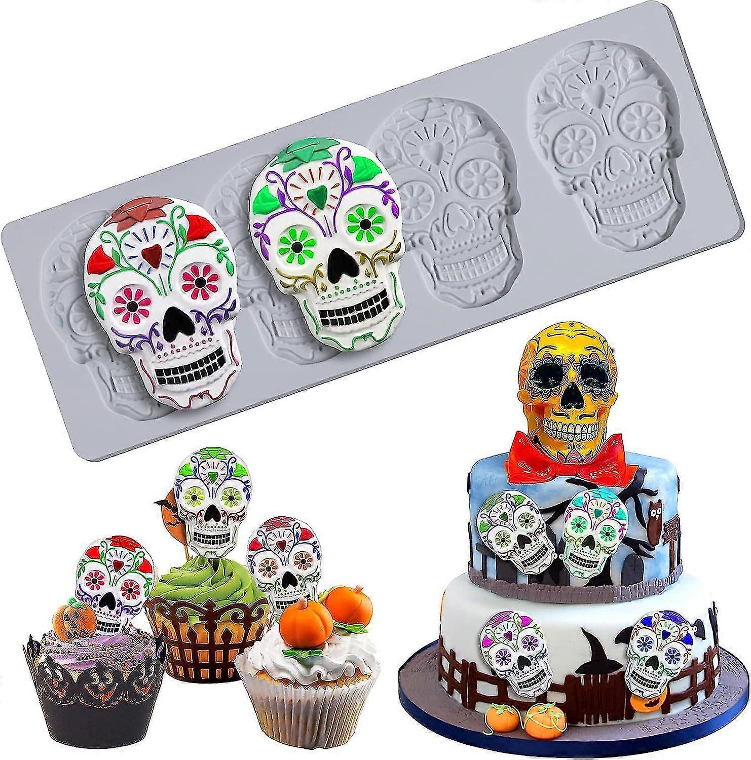 Skull Silicone Molds,skull Fondant Molds For Cake Decorating, 4 Cavity Skull Mold For Sugar Gum Paste, Candy Chocolate Craft, Edible Halloween Death D