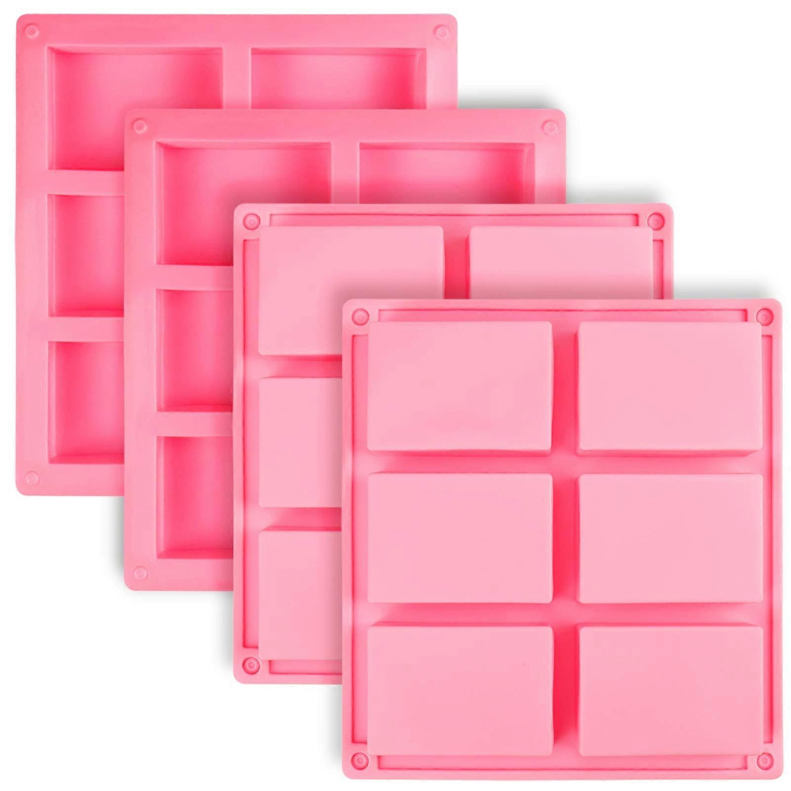 Silicone Cake Molds (4 Pack) 6 Cavity Rectangle Muffin & Pudding Baking Tray Set Non-Stick, Easy Release, Dishwasher Safe