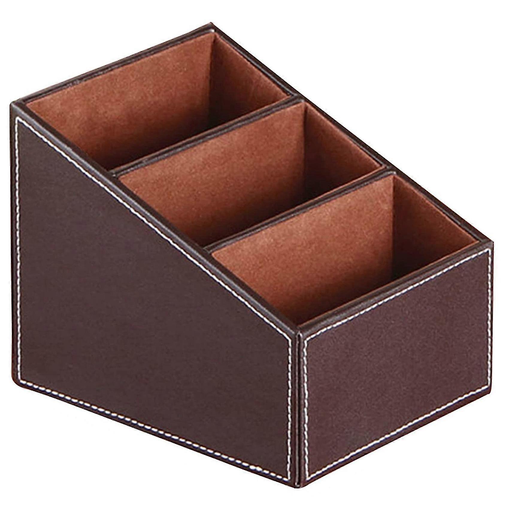 Fashionable Pu Leather Tv Remote Control Bracket With 3 Compartments,storage Rack, Storage Box(brown)
