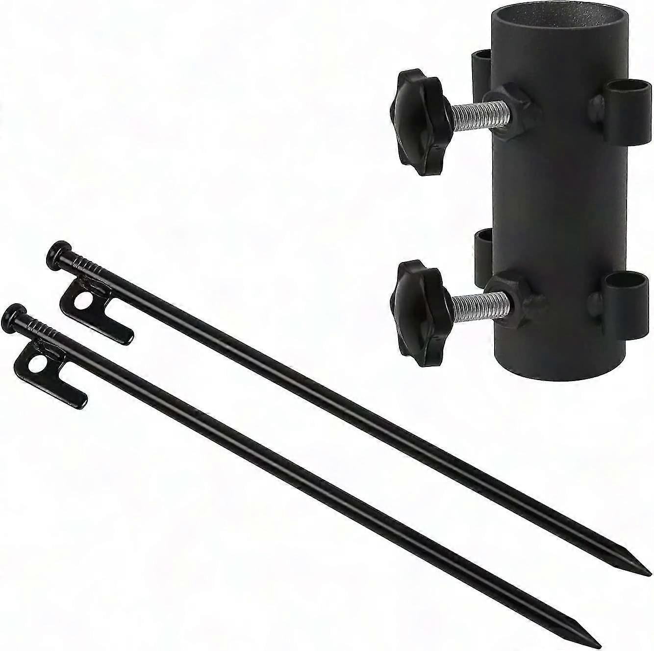 Awning Pole Bracket with 2 Steel Tent Pegs - 30cm Nails, Strong Stable Black Awning Rod for Tents, 30x6cm