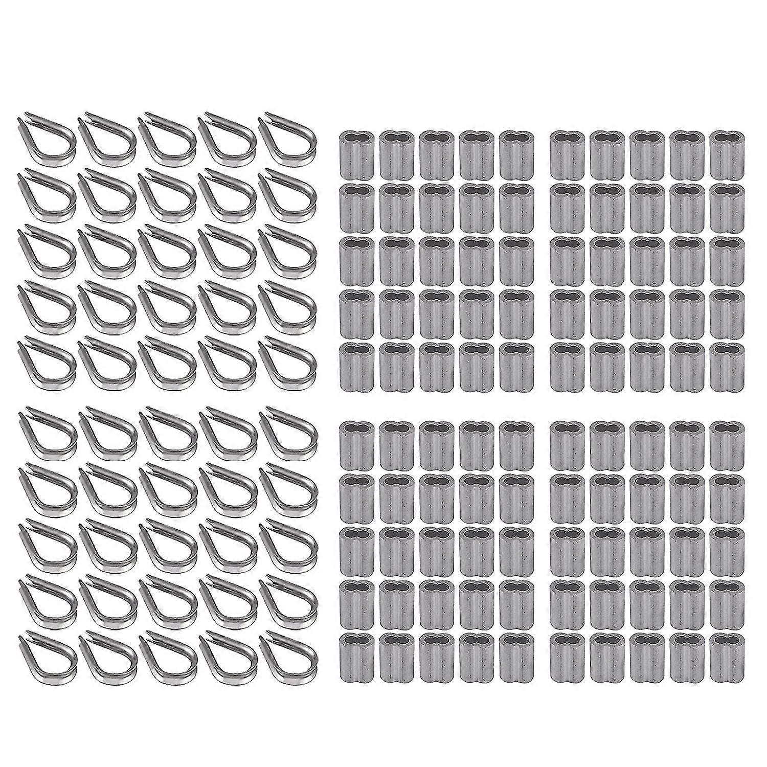 Cable Ferrule 100pcs 1/8inch Crimping Loop Sleeve Crimps 50pcs M3 Stainless Steel Thimble Rigging F