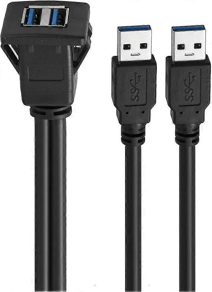 USB Panel Flush Mount Cable USB 3.0 Extension USB Mount, Dash Mount, Flush Mount, Panel Mount Cable, For Car, Boat, Motorcycle (Square Dual USB 3.0 2M