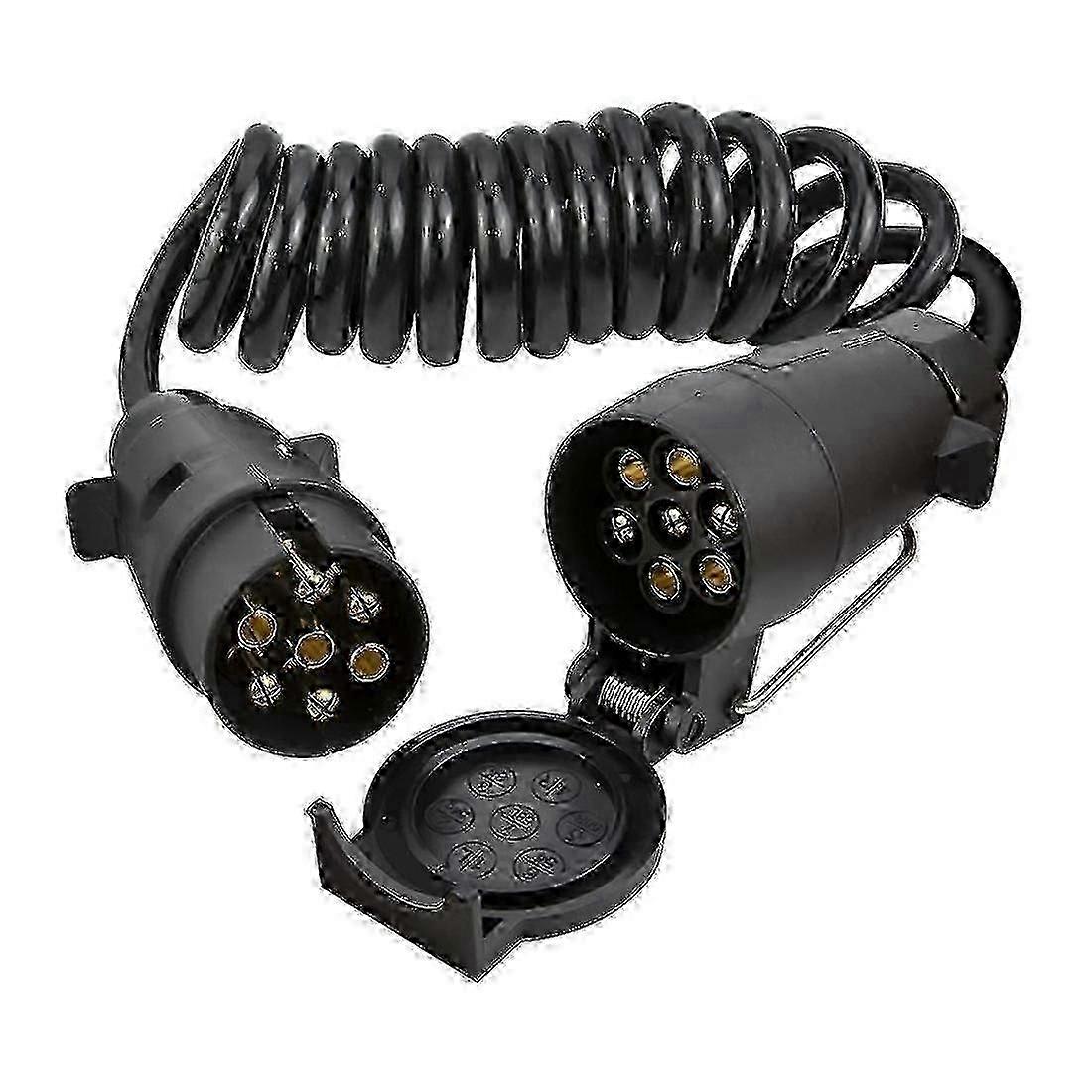 3 Meters 7Pin Trailer Extension Coiled Cable with Trailer Plug Socket Connector, 7 Core RV Electrical Cable Connector