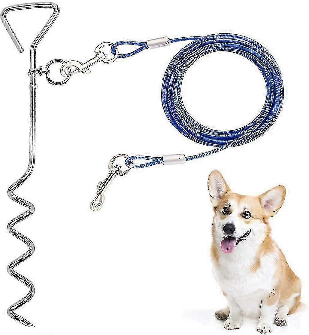 Dog Tie Out Cable and Stake, Heavy Duty Cable with Spring, for Yard, Camping, for Medium Large Dogs Up to 125 lbs