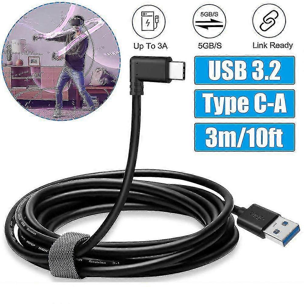 New 10ft Link Cable For Oculus Quest 2 Type-c Right Angle To Usb A 3.2 Charging Cord