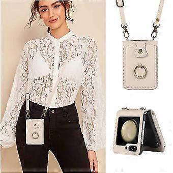 Cavor for Samsung Galaxy Z Flip 6 Case, with Ring Stand, Crossbody Lanyard, RFID Credit Card Holder, Leather Shockproof Protective Case